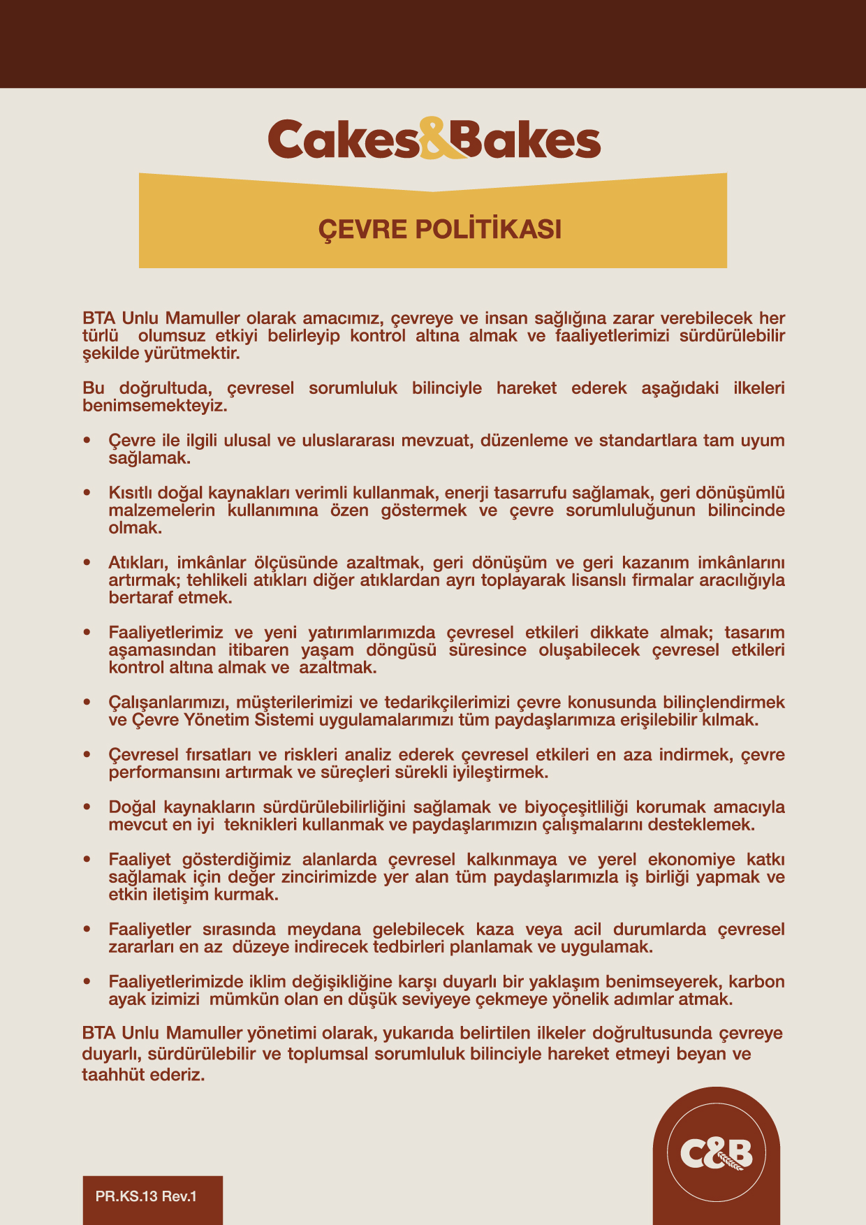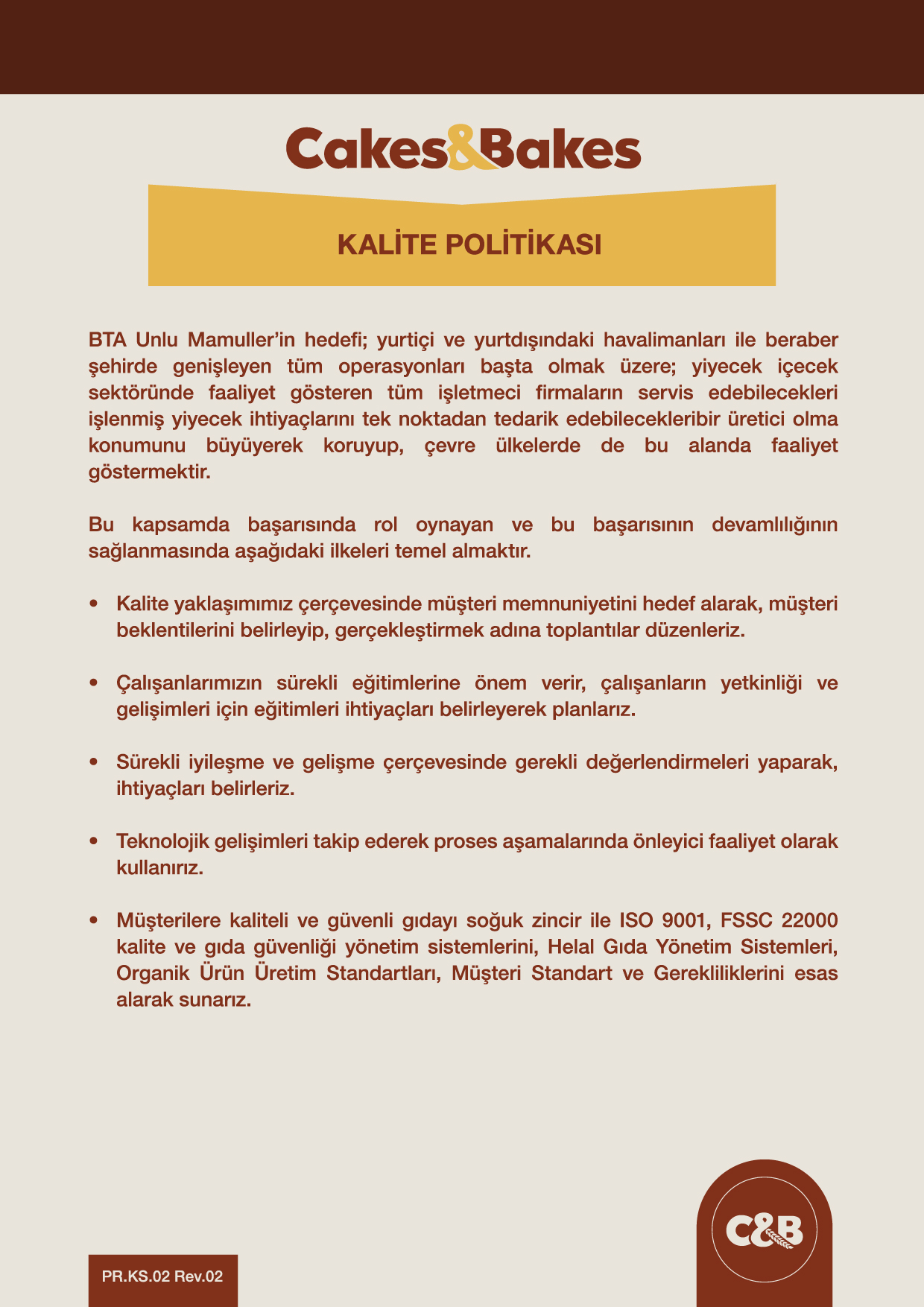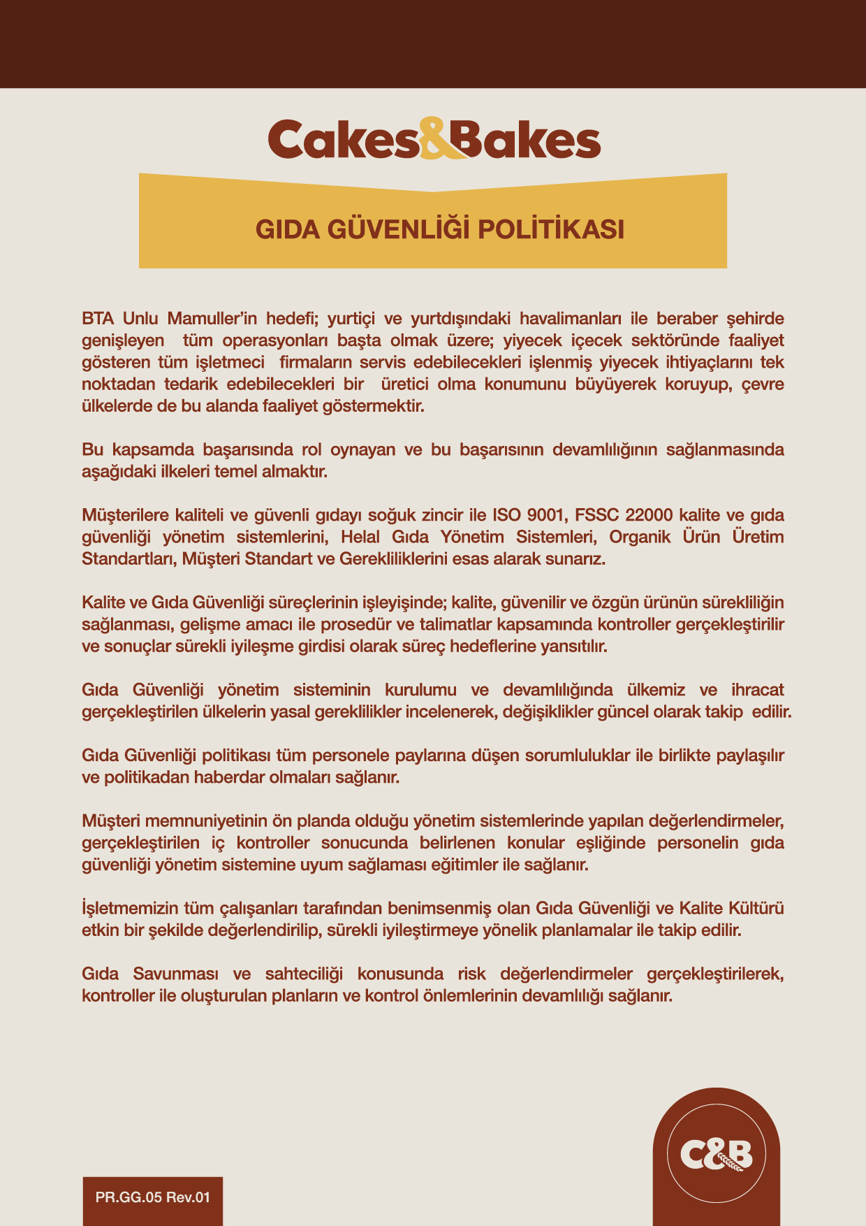 Cakes&Bakes olarak gıda güvenliği ve kalite politikamız gibi, müşteri gizliliğine son derece önem veriyoruz. Size özel hazırladığımız ürün ve reçeteleri büyük bir titizlikle koruyoruz.